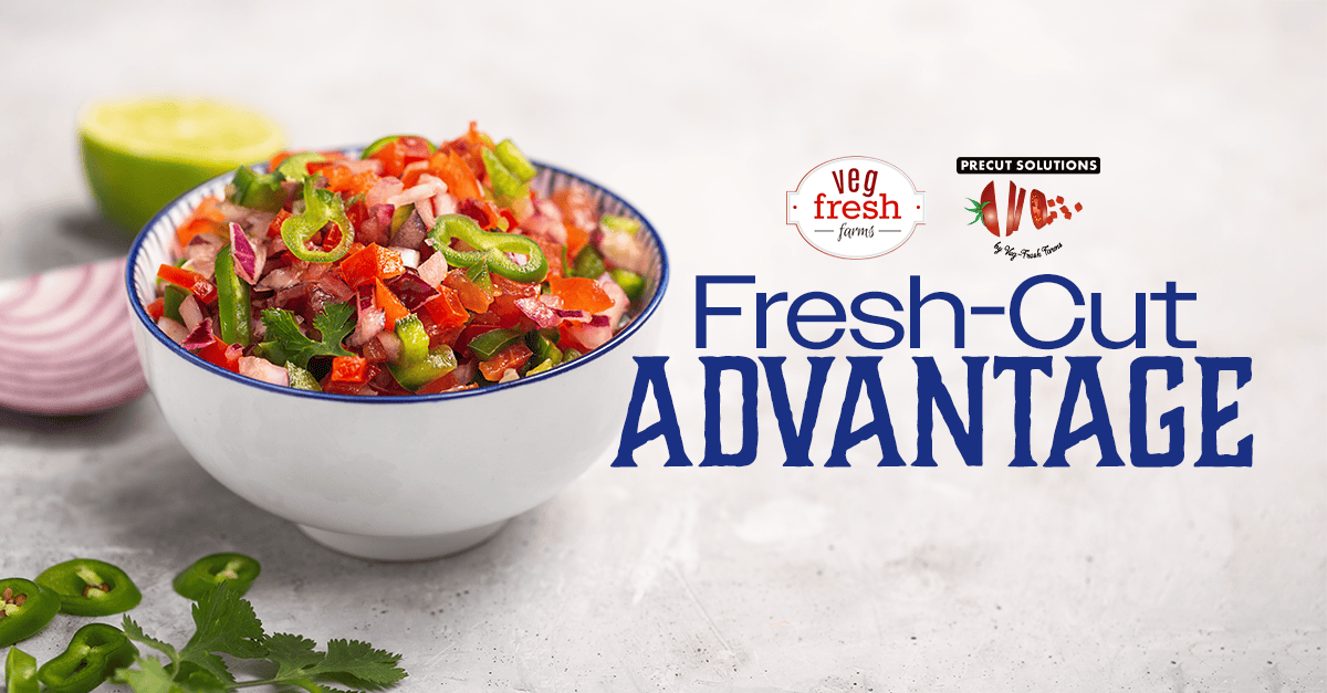 CORONA, CA – Veg Fresh Farms, a leader in the fresh produce industry, is excited to announce a breakthrough in its PreCut Solutions line, delivering a 14-day shelf life for its fresh Pico de Gallo.