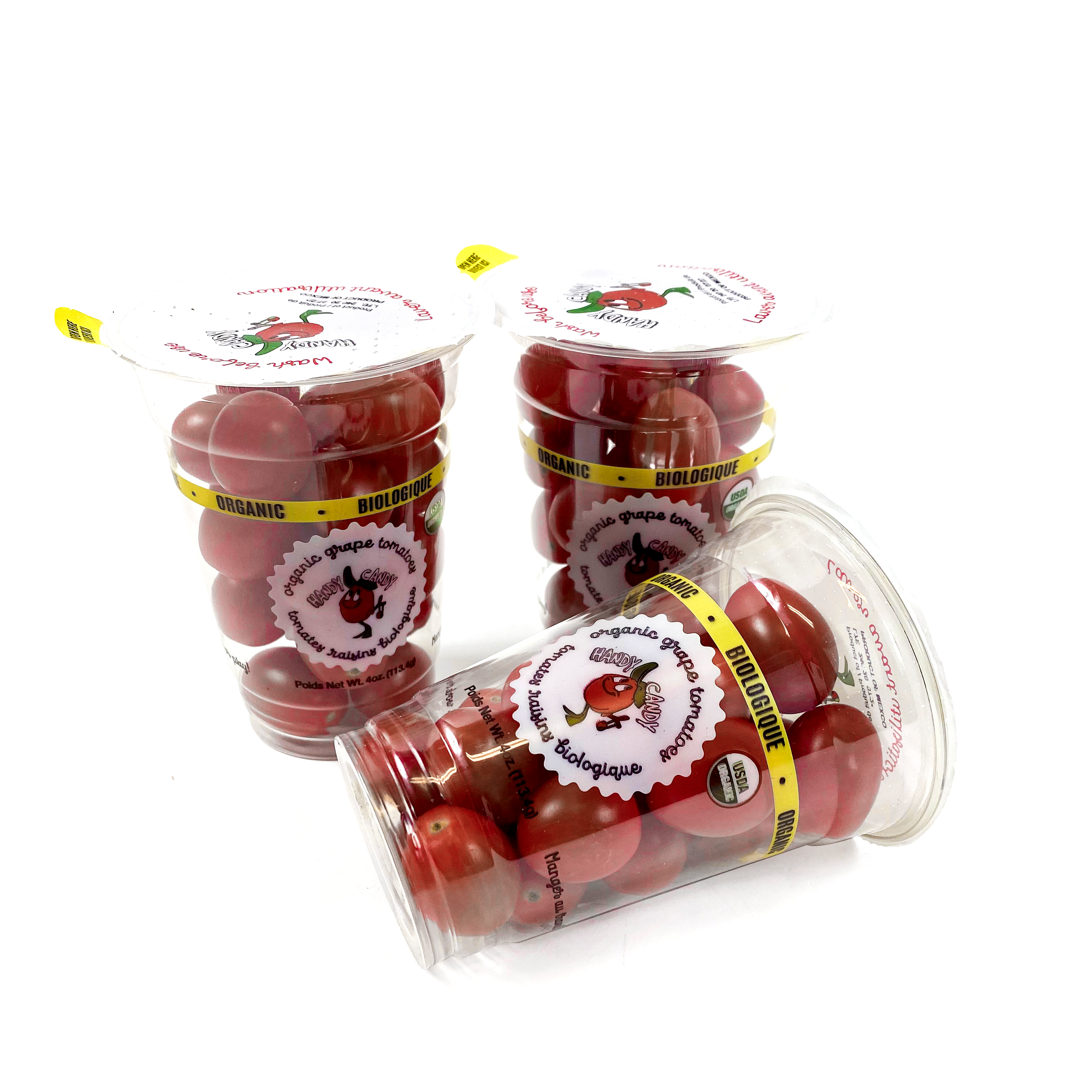 Our Organic Handy Candy snacking tomatoes are great for snacking at work or play, especially with their resealable lid!