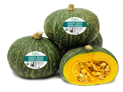 The Kabocha Squash is also known as the Japanese Squash. Its flavor meets in the middle between a pumpkin and sweet potato; but definitely more on the sweeter side.