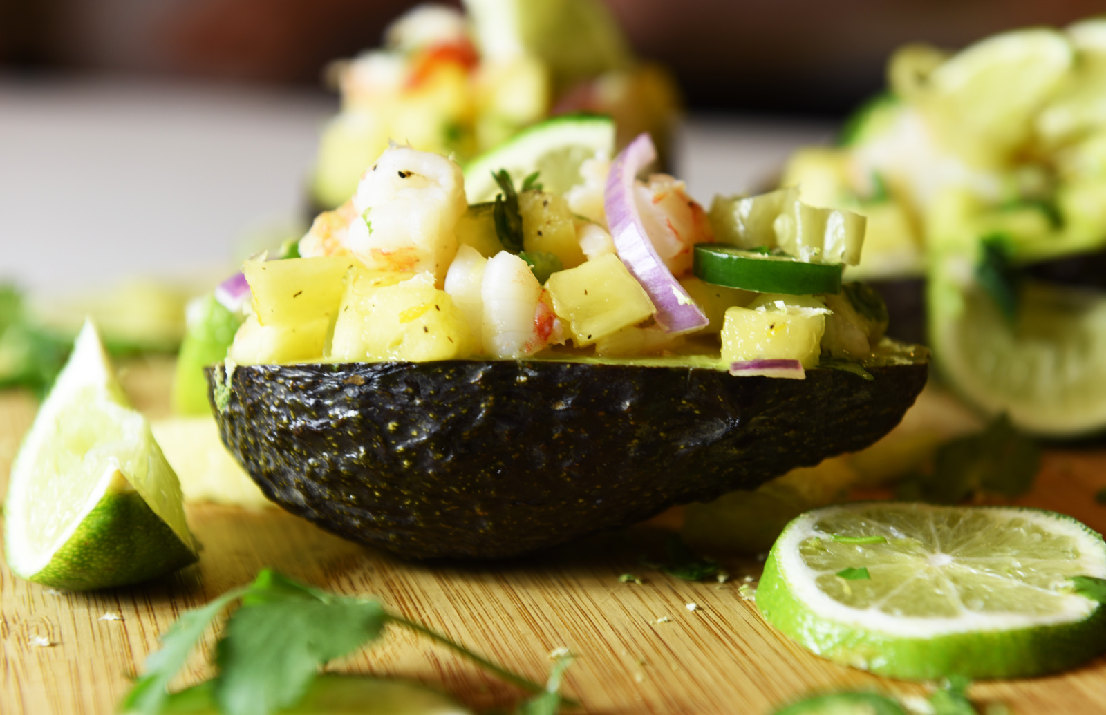 AVOCADO STUFFED LIME SHRIMP CEVICHE