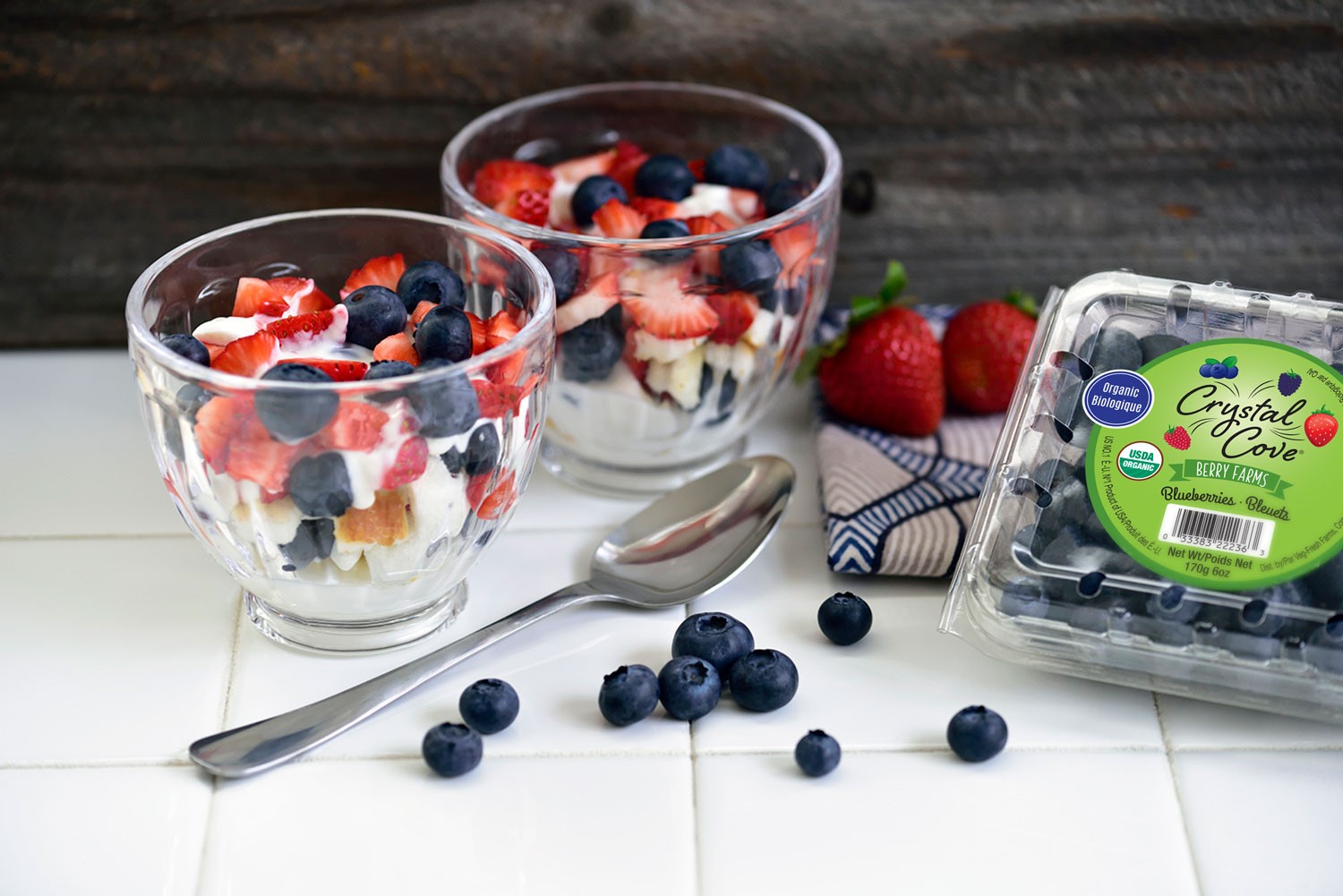 - Top with the final 1/3 of the strawberries and blueberries just prior to serving.