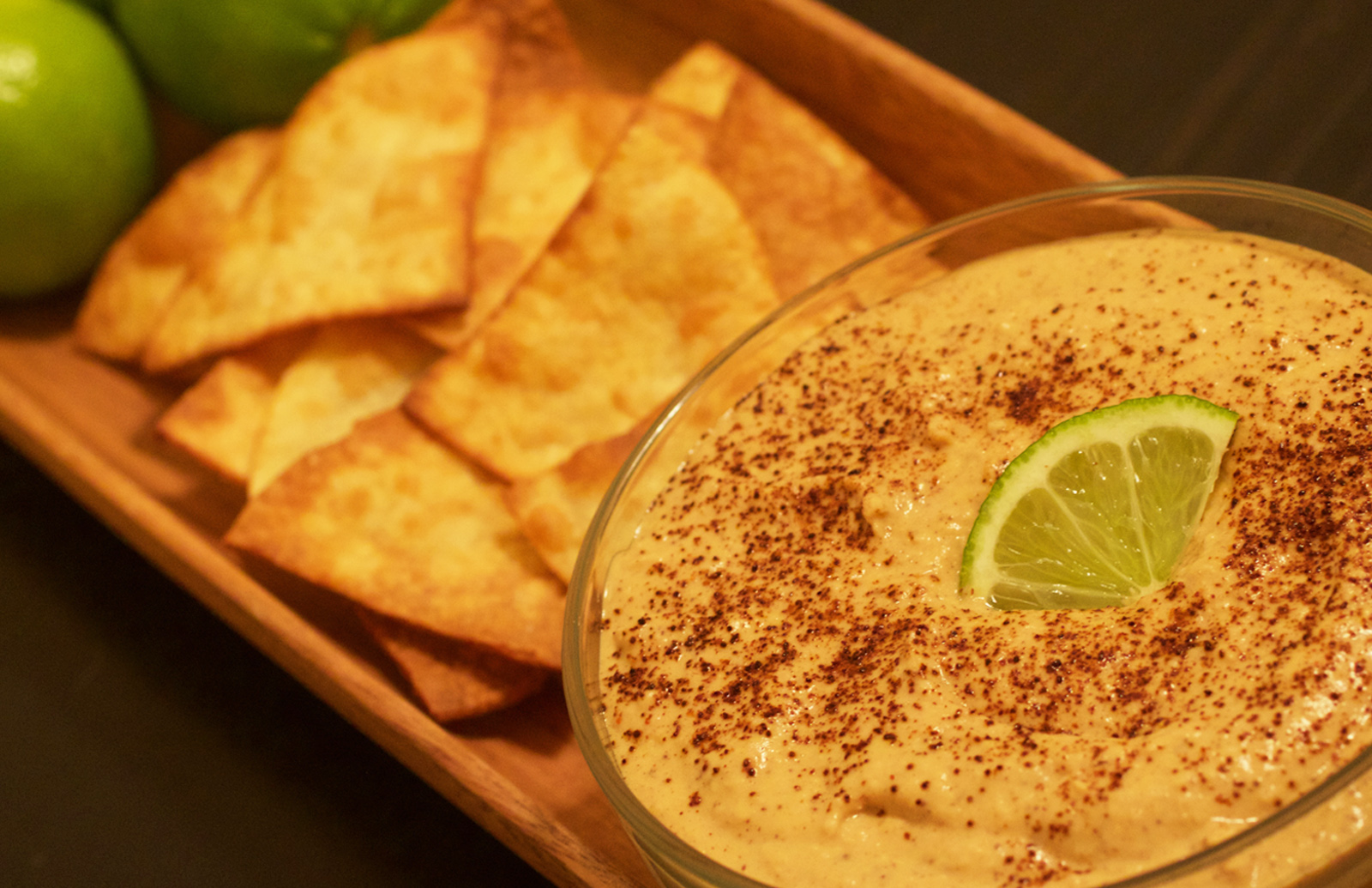 - Place garlic cloves into food processor. Pulse until pureed. Add all remaining ingredients: beans, lime juice, tahini, chili powder, olive oil, and salt. Pulse until smooth.