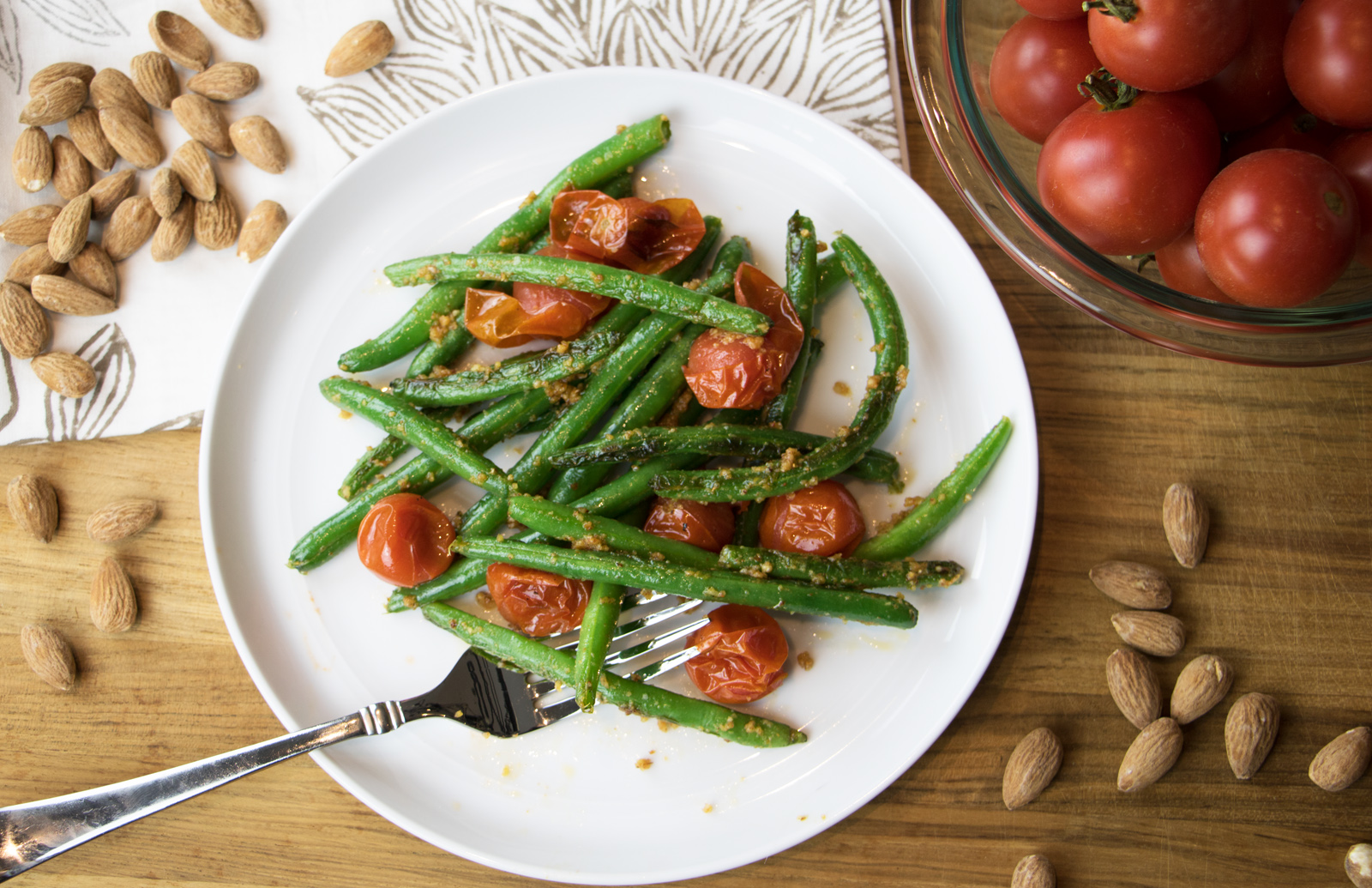 PESTO GREEN BEANS WITH ROASTED TOMATOES